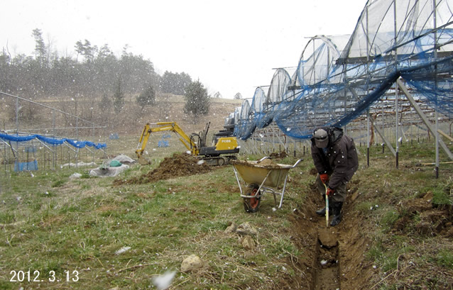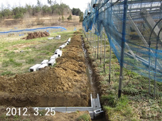 | 一棟のハウスは従来の側溝まで距離があるため、新たに側溝を設けました。 | |||||||||||||||||||||||||||||||||||||||