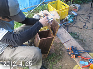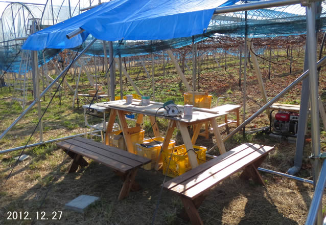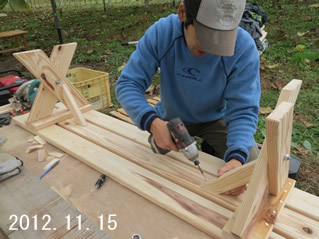 畑の片隅に木工製作スペースを設けました。2012年の農閑期は木工に勤しみました。
