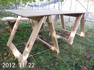 | やりたかった木工製作を始めました。まずはベンチを2台作りました。 | やはり作業台が必要ということで、作業台を製作しました。 | ||||||||||||||||||||||||||||||||||||||