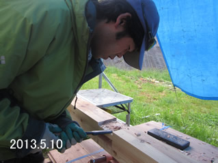 | ノコギリ作業は慎重に。 | ノミで綺麗に仕上げていきます。 | ||||||||||||||||||||||||||||||||||||