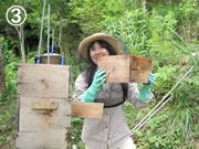 祝!入居 巣箱が気に入られるとミツバチに住んでもらえます。 入居後は、日よけをしたりスズメバチから守ったりして巣箱の環境を整えてやります。 |